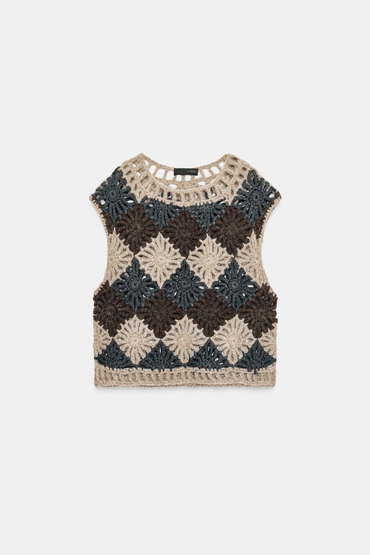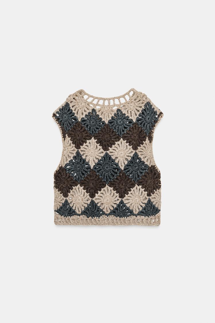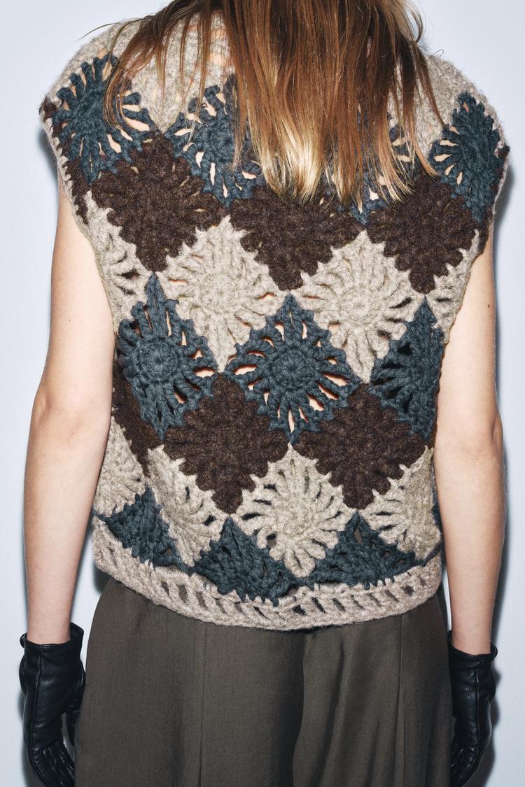 ZARA ВЯЗАНЫЙ ЖИЛЕТ, РАЗНОЦВЕТНЫЙ