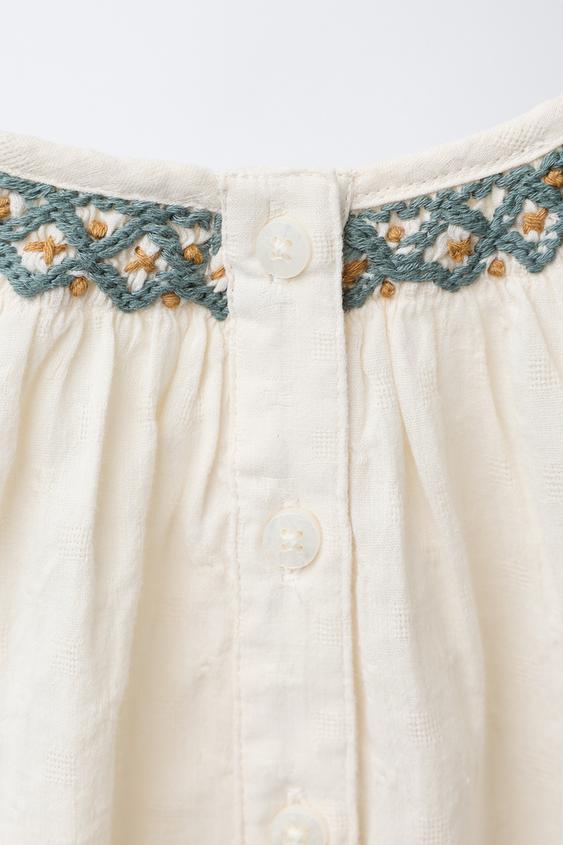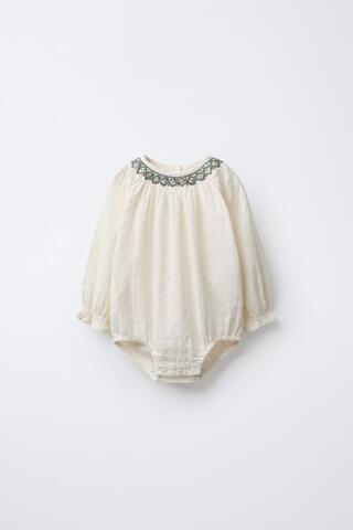 ZARA БОДИ С КОНТРАСТНОЙ ВЫШИВКОЙ, ВАНИЛЬНЫЙ