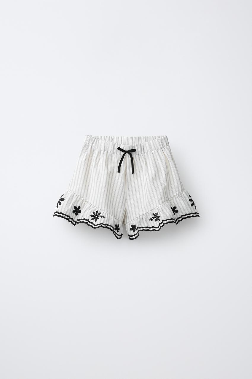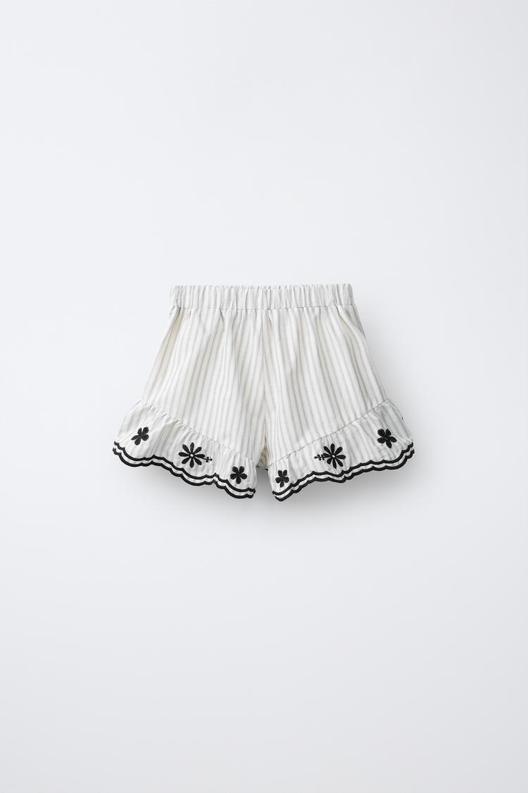 ZARA ВЫШИТЫЕ БЕРМУДЫ В ПОЛОСКУ, БЕЛЫЙ/ЧЕРНЫЙ