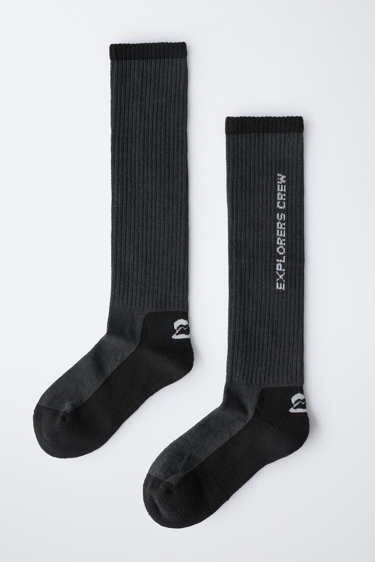 ZARA ВЫСОКИЕ НОСКИ С НАДПИСЬЮ, ЧЕРНЫЙ