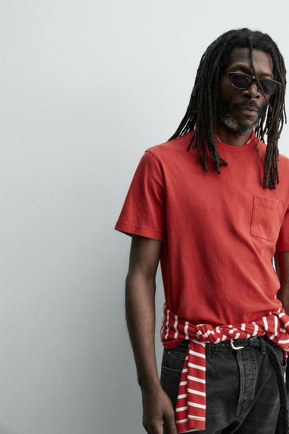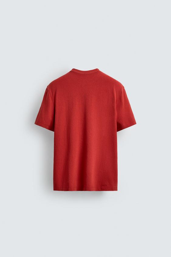 ZARA X AARON LEVINE ФУТБОЛКА С КАРМАНОМ, КРАСНЫЙ