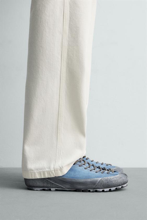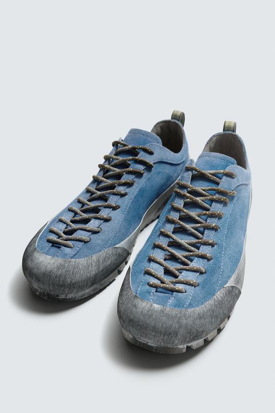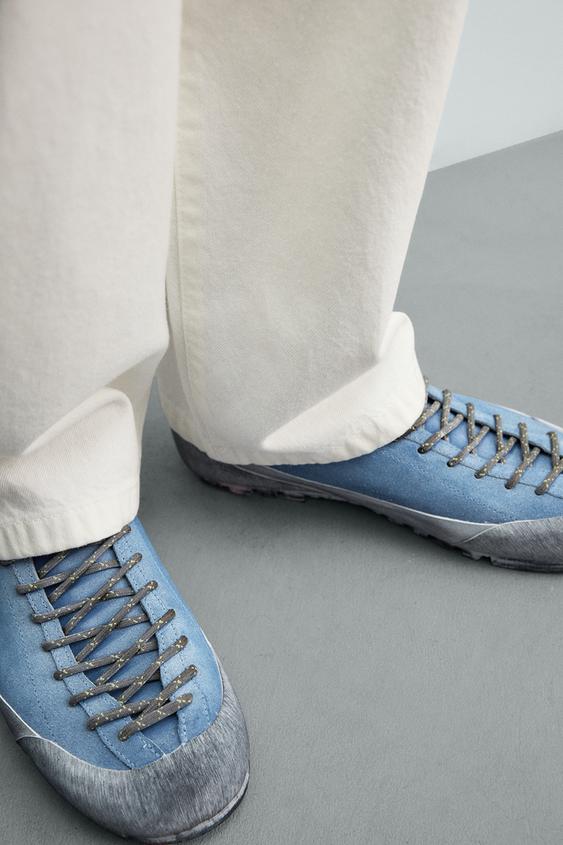 Кроссовки на шнуровке. Верх из кожи с замшевой отделкой. Декоративная строчка на подъеме. Закругленный носок. Резиновая зубчатая подошва VIBRAM®. Коллекция Aaron Levine x Zara.