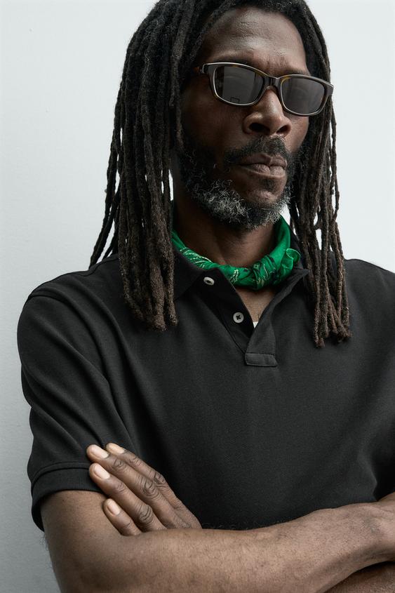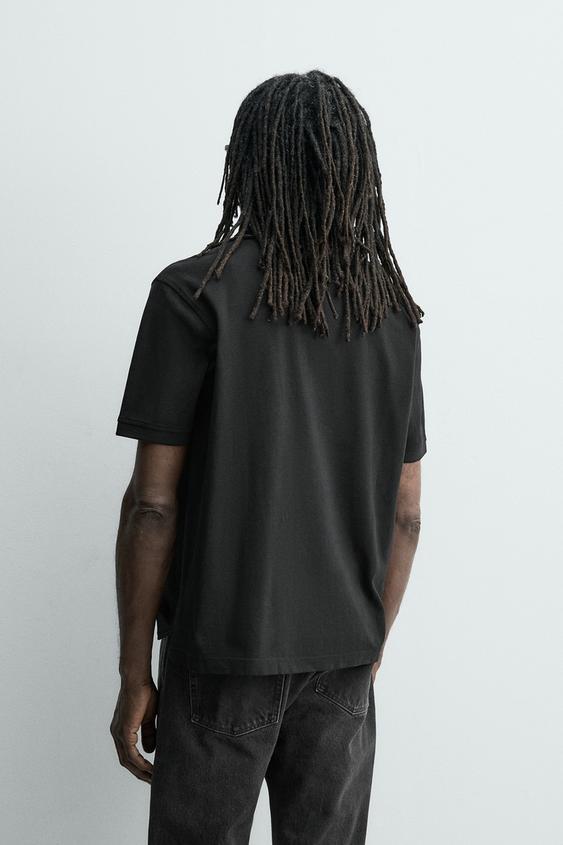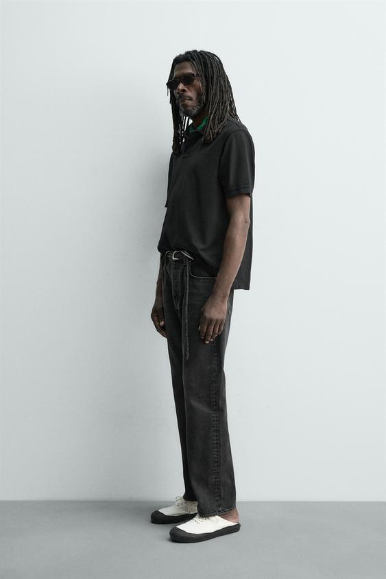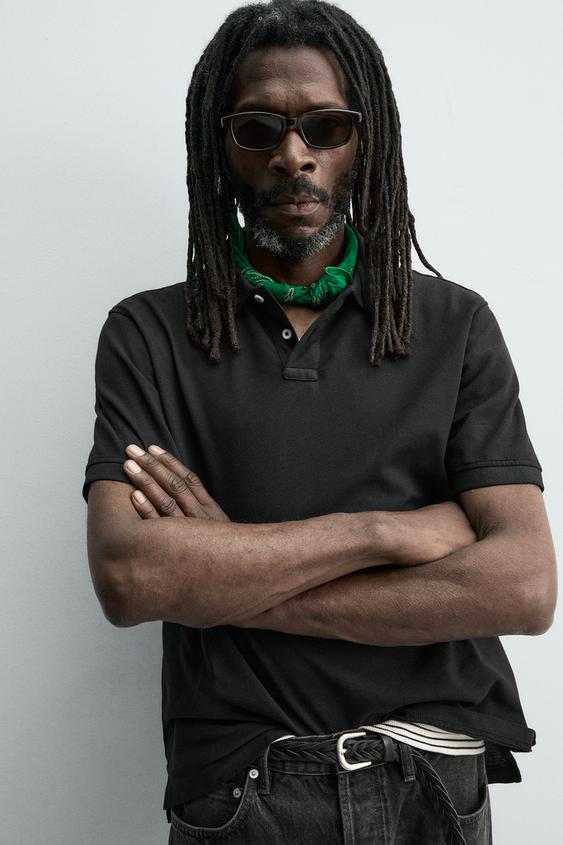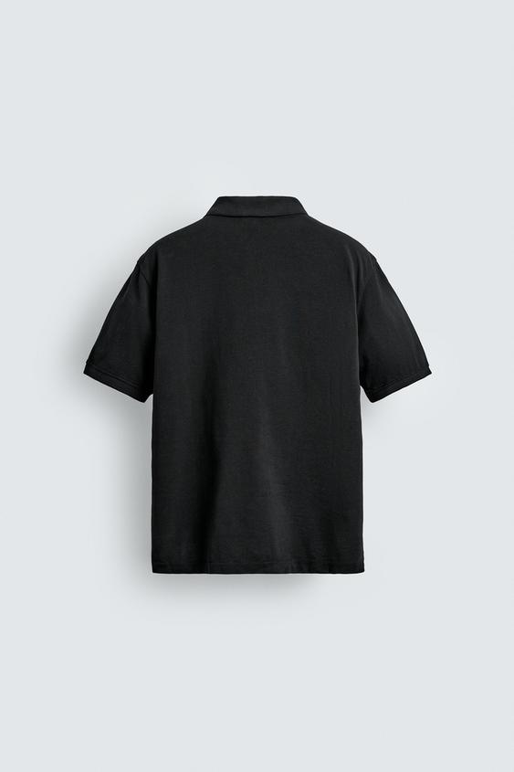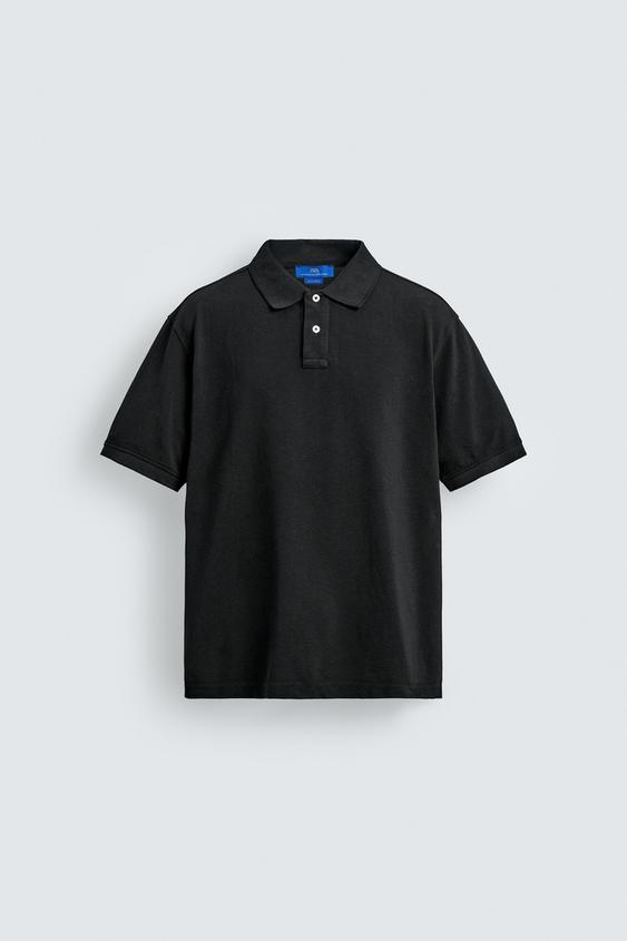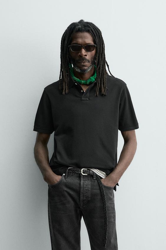 ZARA X AARON LEVINE ПОЛО ПИКЕ С ЭФФЕКТОМ ПОТЕРТОСТИ, ЧЕРНЫЙ