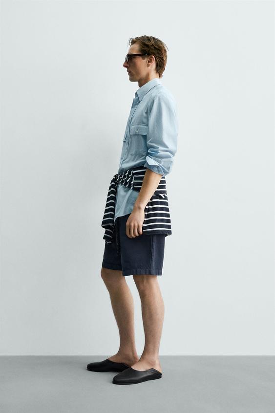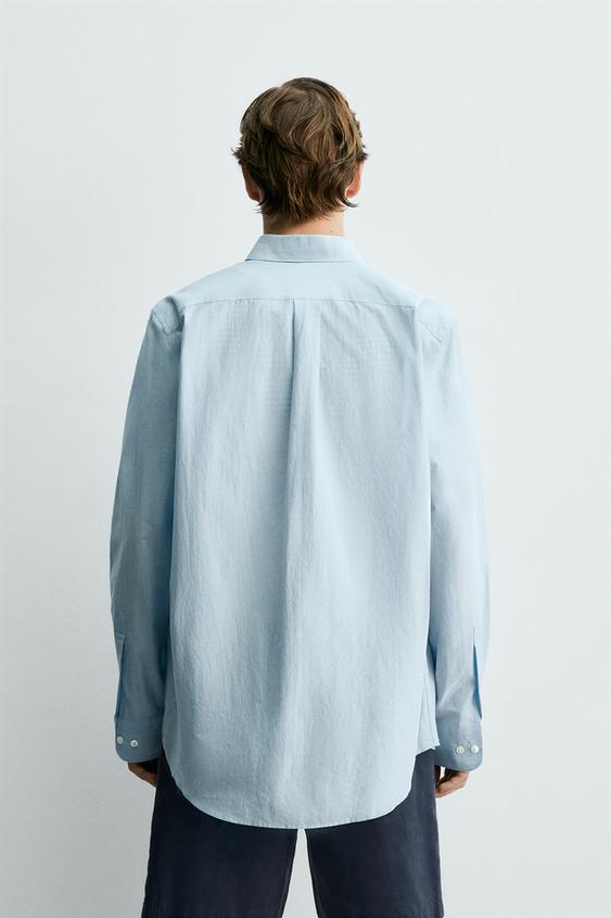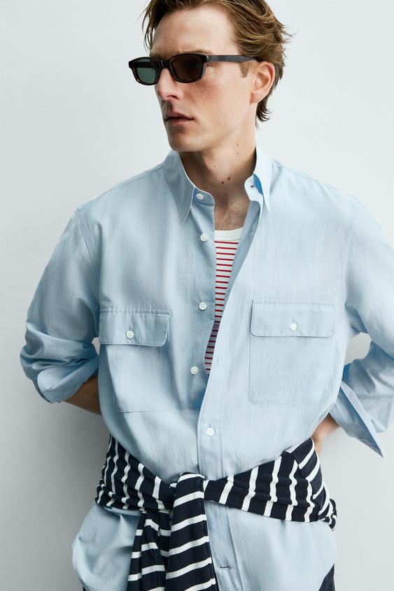 ZARA X AARON LEVINE РУБАШКА СВОБОДНОГО КРОЯ С КАРМАНАМИ, СВЕТЛО-ГОЛУБОЙ