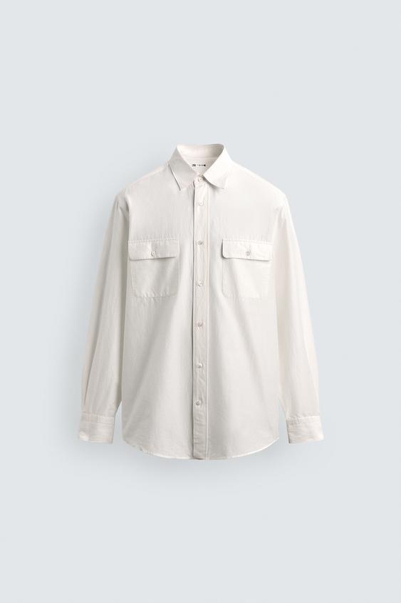 ZARA X AARON LEVINE РУБАШКА СВОБОДНОГО КРОЯ С КАРМАНАМИ, БЕЛЫЙ