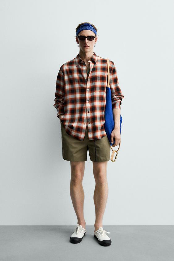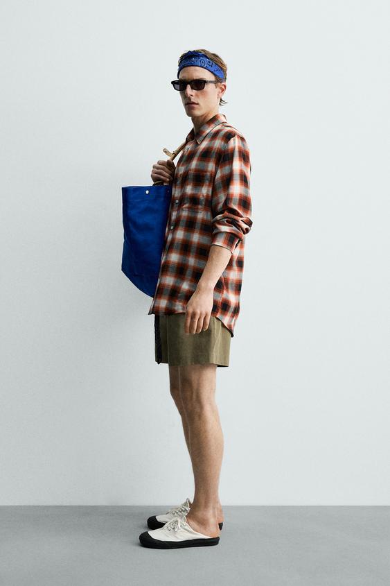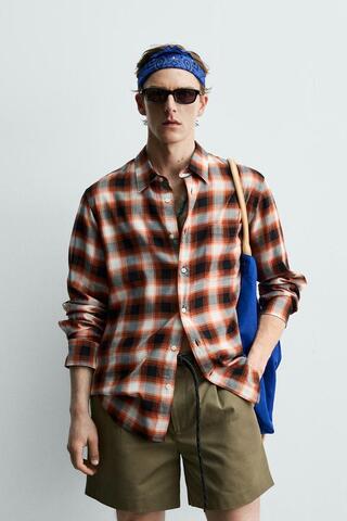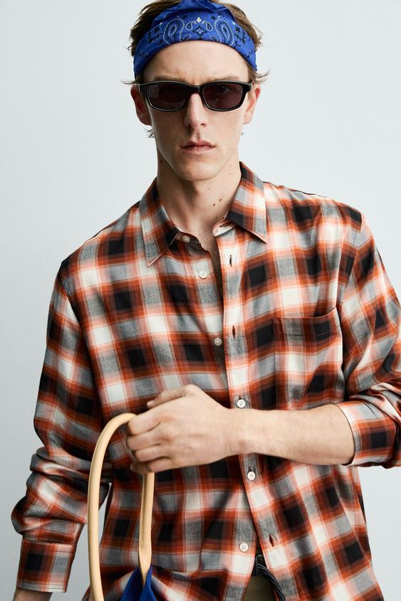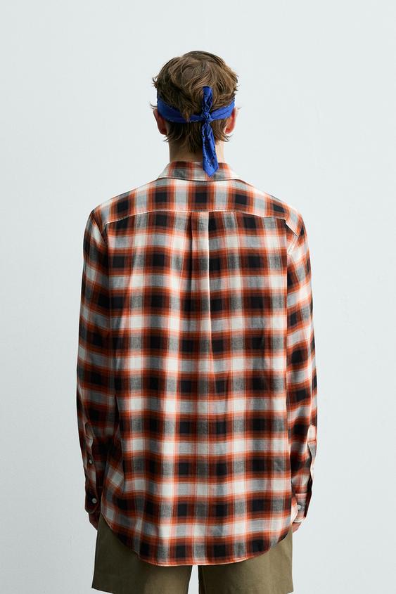 ZARA X AARON LEVINE РУБАШКА СВОБОДНОГО КРОЯ В КЛЕТКУ, КРАСНЫЙ
