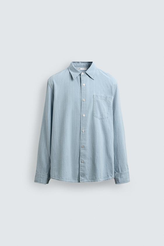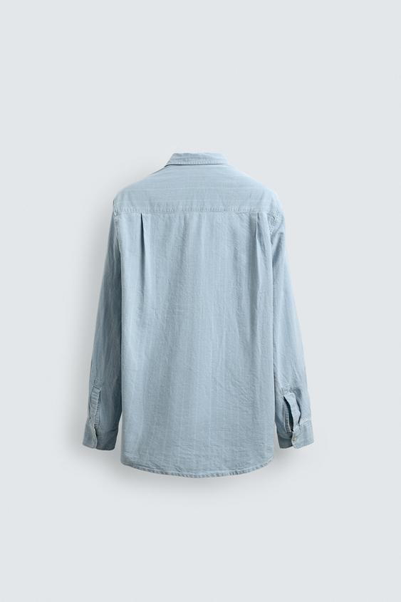 ZARA X AARON LEVINE РУБАШКА ЖАККАРДОВЫЙ ДЕНИМ, ГОЛУБОЙ