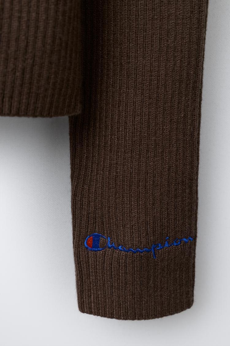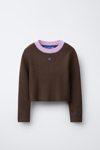 ZARA X CHAMPION ® ДЖЕМПЕР В РУБЧИК С КОНТРАСТНЫМ ВОРОТНИКОМ, ШОКОЛАДНО-КОРИЧНЕВЫЙ