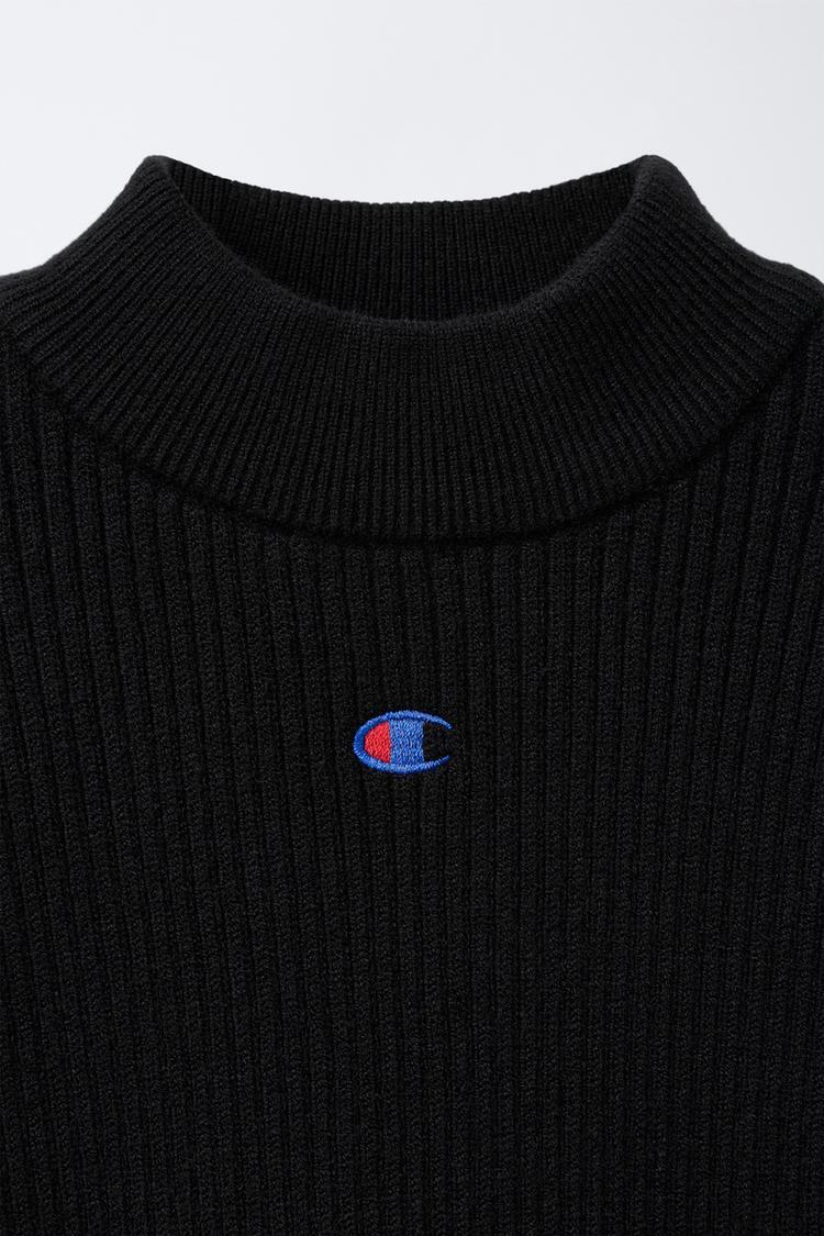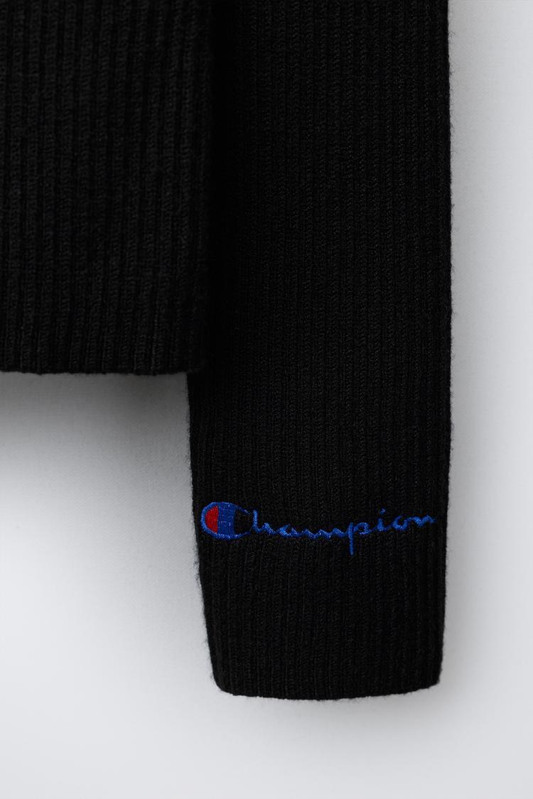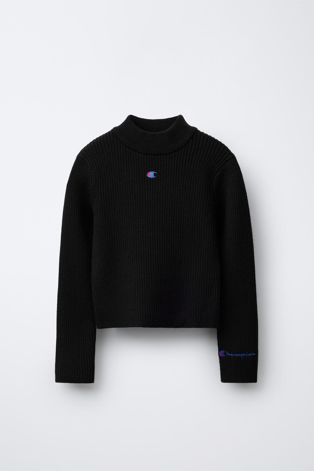 ZARA X CHAMPION ® ДЖЕМПЕР В РУБЧИК С ВОРОТНИКОМ-СТОЙКОЙ, ЧЕРНЫЙ