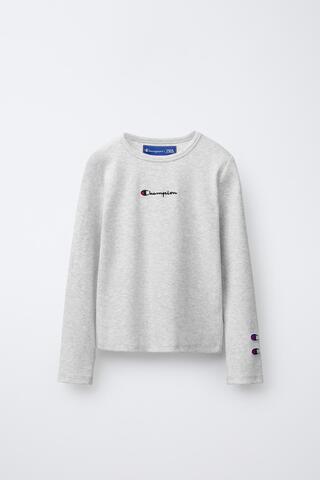 ZARA X CHAMPION ТОП В РУБЧИК С НАДПИСЬЮ, СЕРЫЙ МЕЛАНЖ