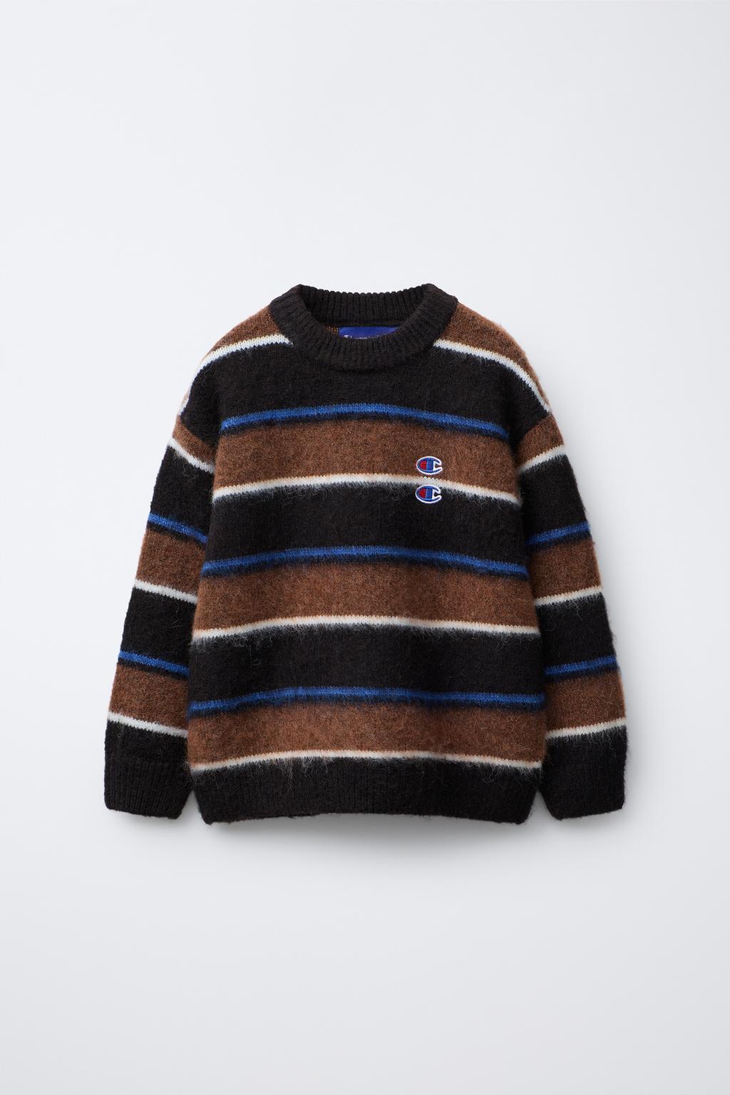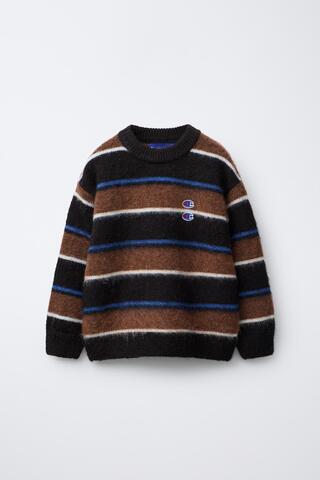 ZARA X CHAMPION ® ТРИКОТАЖНЫЙ ДЖЕМПЕР В ПОЛОСКУ, КОРИЧНЕВЫЙ
