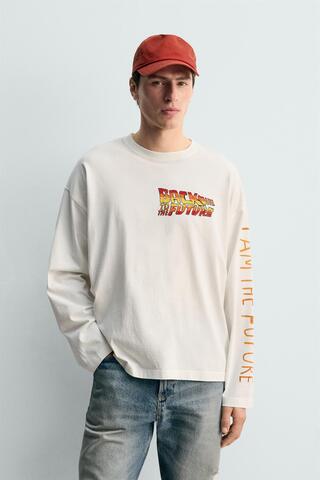 ZARA X DYLAN´S T-SHIRT CLUB ФУТБОЛКА С ИЛЛЮСТРАЦИЕЙ BACK TO THE FUTURE© UCS LLC AND AMBLIN, БЕЛЫЙ
