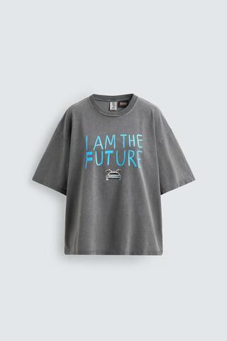 ZARA X DYLAN´S T-SHIRT CLUB ФУТБОЛКА С ИЛЛЮСТРАЦИЕЙ BACK TO THE FUTURE© UCS LLC AND AMBLIN, СЕРЫЙ