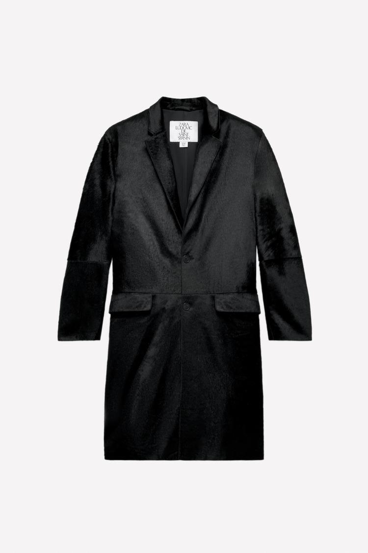 ZARA X LUDOVIC DE SAINT SERNIN СВОБОДНОЕ КОЖАНОЕ ПАЛЬТО, ЧЕРНЫЙ