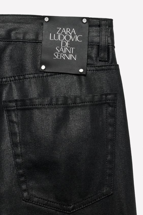 ZARA X LUDOVIC DE SAINT SERNIN ЗАУЖЕННЫЕ ВОЩЕНЫЕ ДЖИНСЫ, ЧЕРНЫЙ