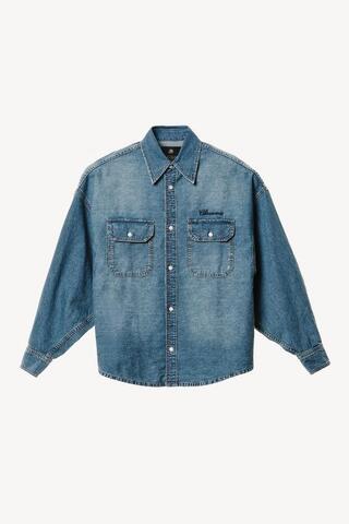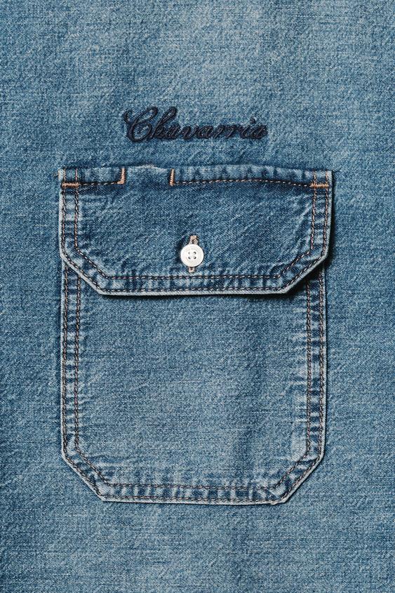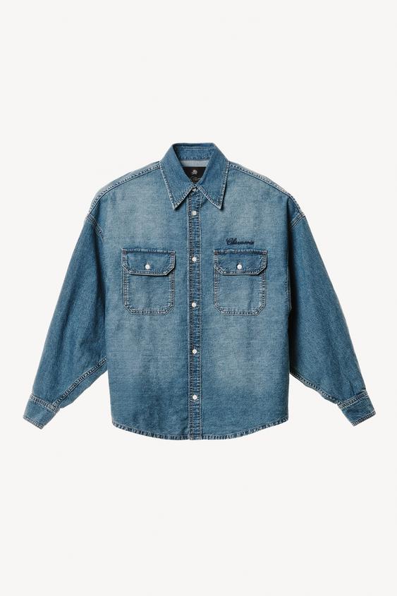 Рубашка свободного покроя из хлопчатобумажного денима. Воротник с лацканами и длинные рукава с манжетами на пуговицах. Контрастный вышитый логотип на груди. Накладные карманы с клапанами на груди. Эффект стирки. Застежка спереди на пуговицы. Специальная коллекция Willy Chavarria x Zara.