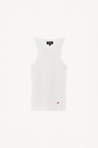 Футболка с облегающим кроем, изготовленная из эластичной хлопчатобумажной ткани. С широким круглым вырезом горловины и без рукавов. С двойной кантом по краям. Контрастный вышитый логотип на подоле.