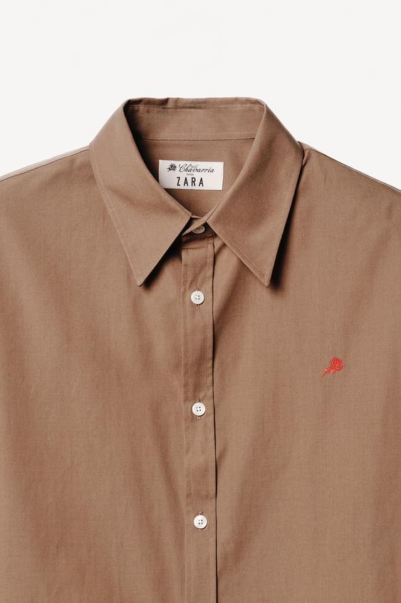 ZARA X WILLY CHAVARRIA ХЛОПЧАТОБУМАЖНАЯ РУБАШКА СВОБОДНОГО КРОЯ, ЦВЕТ ВЕРБЛЮЖЬЕЙ ШЕРСТИ