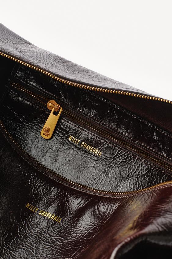 ZARA X WILLY CHAVARRIA КОЖАНЫЙ КЛАТЧ XXL, КОРИЧНЕВЫЙ