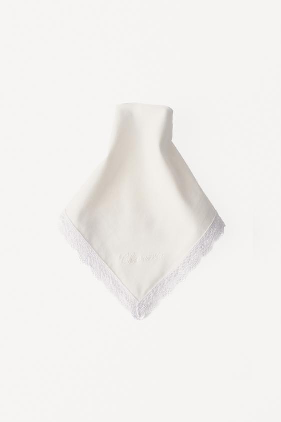 Шарф из хлопчатобумажной ткани. Отделан кружевом в тон. Вышитый логотип в тон. Размеры: 33 х 33 см. Специальная коллекция Willy Chavarria x Zara.