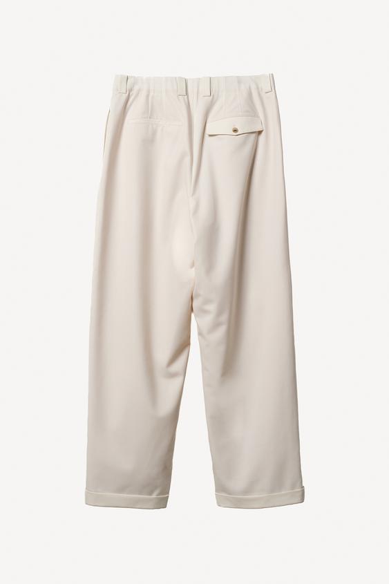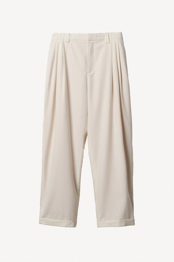 ZARA X WILLY CHAVARRIA ПЛИССИРОВАННЫЕ КОСТЮМНЫЕ БРЮКИ, ЦВЕТ СЛОНОВОЙ КОСТИ