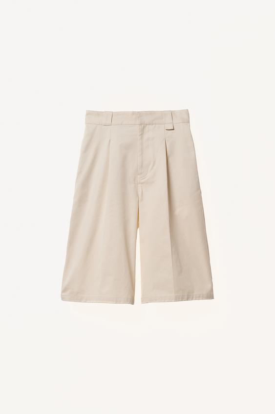 ZARA X WILLY CHAVARRIA ШОРТЫ-БЕРМУДЫ С ШИРОКИМИ ШТАНИНАМИ И ПЛИССИРОВКОЙ, КРЕМОВЫЙ