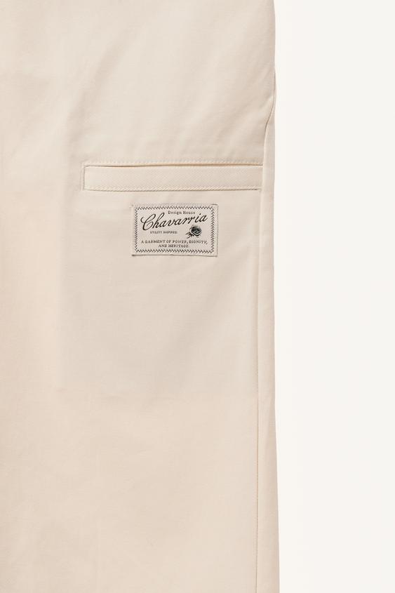 Широкие шорты-бермуды из хлопчатобумажной ткани. Со складками спереди на талии. Боковые и задние прорезные карманы. Штанины с прорезными карманами и нашивкой с логотипом. Ширинка застегивается на молнию и потайной металлический крючок. Специальная коллекция Willy Chavarria x от Zara.