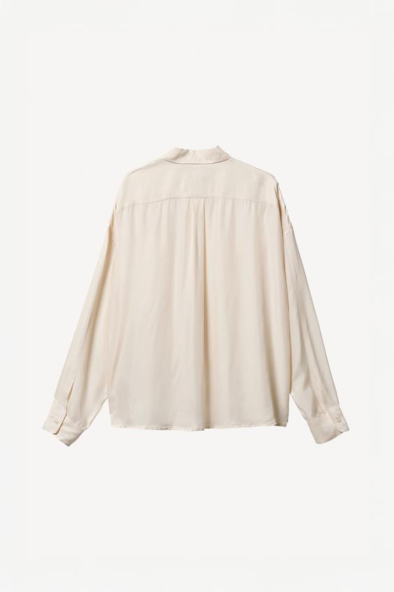 ZARA X WILLY CHAVARRIA СТРУЯЩАЯСЯ РУБАШКА ИЗ КУПРОВИСКОЗЫ, КРЕМОВЫЙ