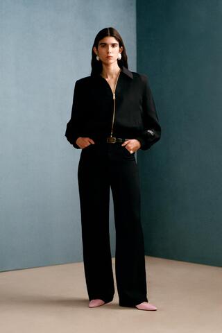 ZARA X WILLY CHAVARRIA СТРУЯЩИЕСЯ БРЮКИ С ПРЯМЫМИ ШТАНИНАМИ, ЧЕРНЫЙ