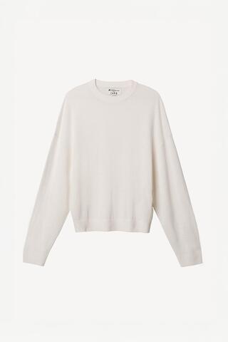 Лёгкий трикотажный свитер с длинным рукавом, связанный из пряжи, состоящей из смеси шерсти и 10 % кашемира. С круглым вырезом горловины и длинными рукавами. Детали с резинкой.