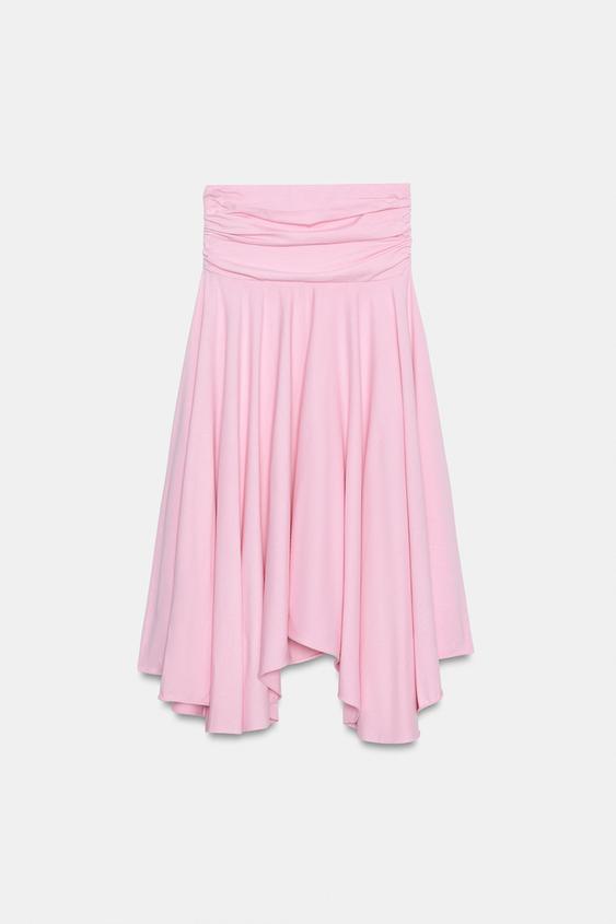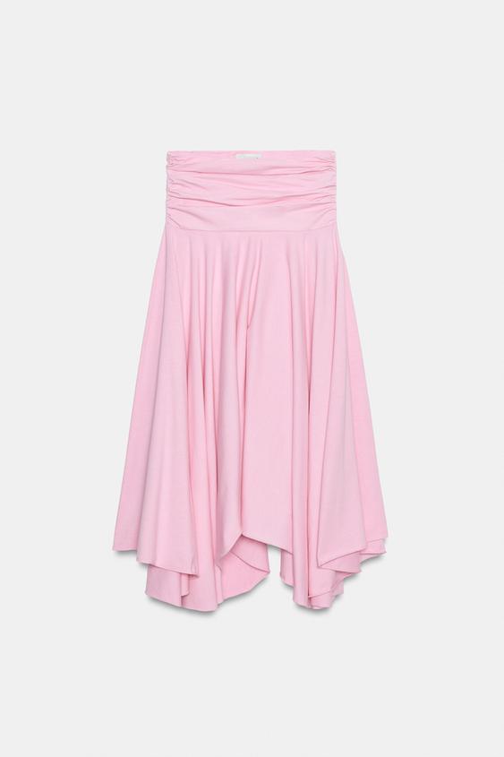 ZARA ЮБКА АСИММЕТРИЧНОГО КРОЯ С ПОЯСОМ-КУШАКОМ, РОЗОВЫЙ