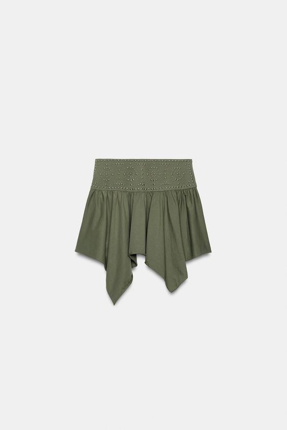 ZARA ЮБКА АСИММЕТРИЧНОГО КРОЯ С ЗАКЛЕПКАМИ, ЗЕЛЕНЫЙ