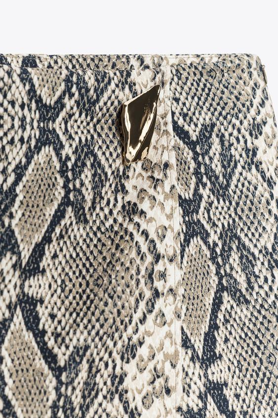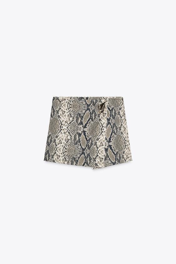 ZARA ЮБКА-БРЮКИ С АСИММЕТРИЧНОЙ ОТДЕЛКОЙ, ЗМЕИНЫЙ ПРИНТ