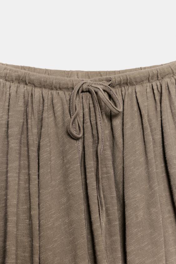 Юбка миди из 100% хлопка. Средняя посадка и регулируемый эластичный пояс на шнурках.