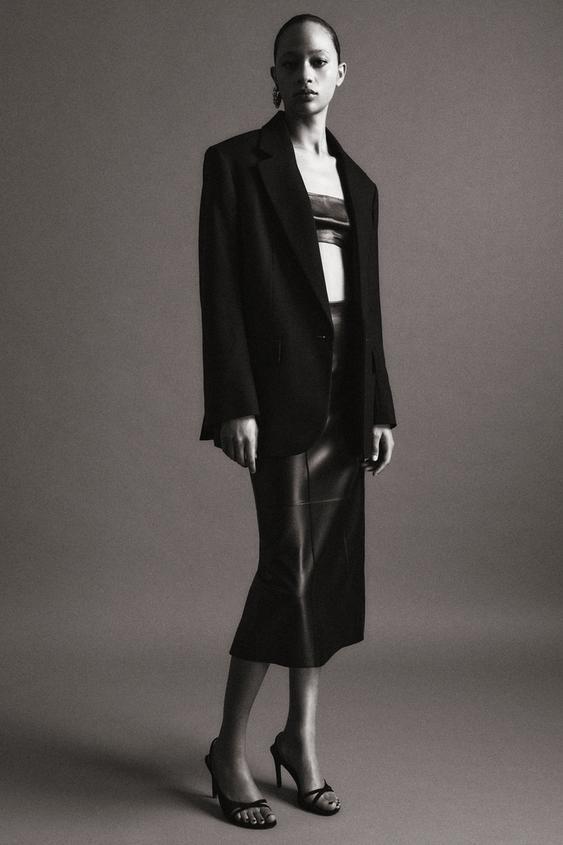 ZARA ЮБКА ИЗ 100% КОЖИ — ZW COLLECTION LIMITED EDITION, ЧЕРНЫЙ