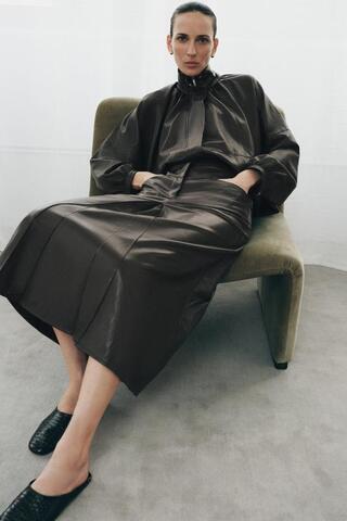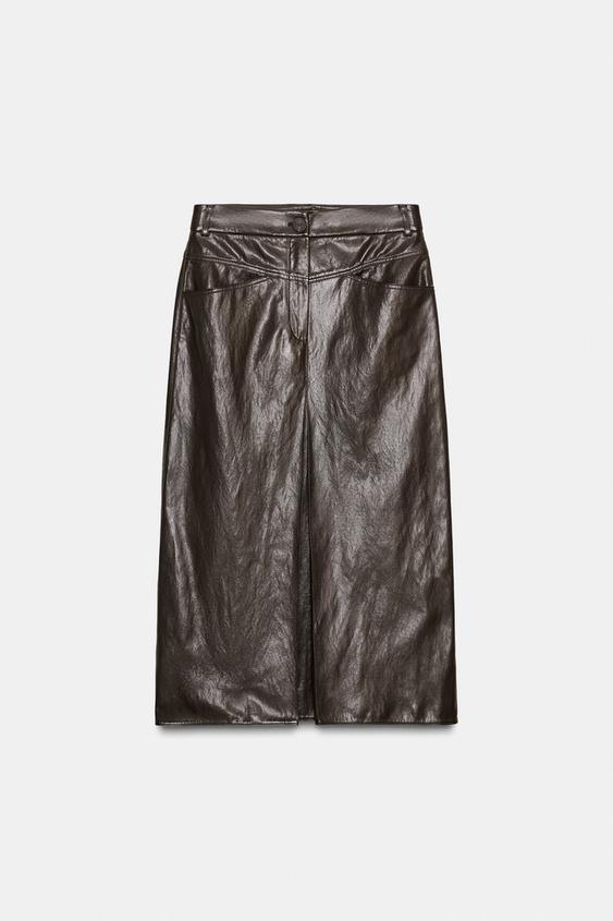 ZARA ЮБКА ИЗ ИСКУССТВЕННОЙ КОЖИ СО СКЛАДКАМИ — ZW COLLECTION, СЕРО-КОРИЧНЕВЫЙ