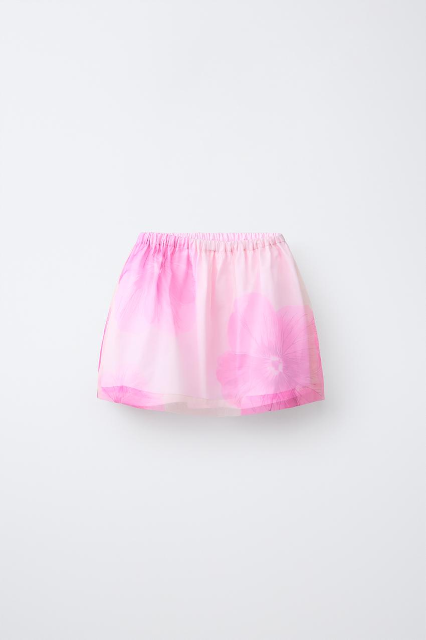 ZARA ЮБКА ИЗ ОРГАНЗЫ С ЦВЕТОЧНЫМ ПРИНТОМ, РОЗОВЫЙ