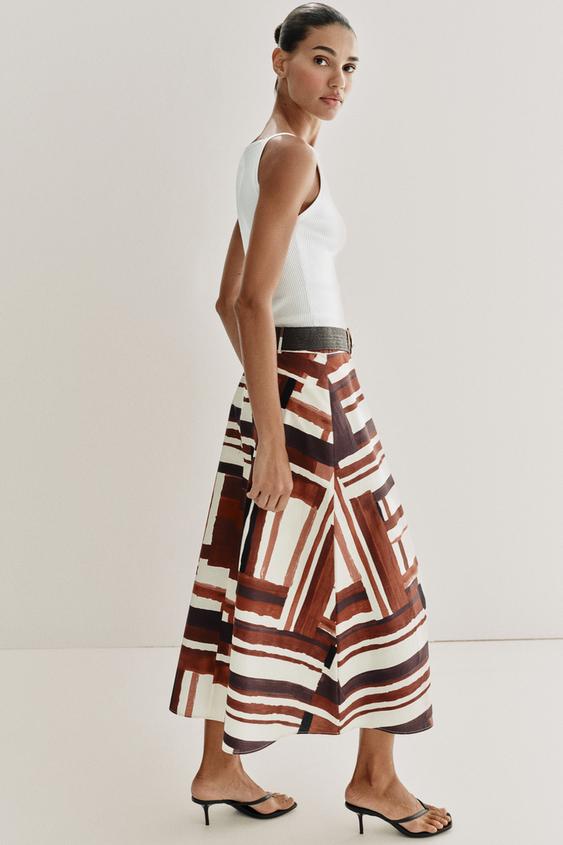 ZARA ЮБКА ИЗ ПОПЛИНА С ПРИНТОМ И РЕМНЕМ, РАЗНОЦВЕТНЫЙ