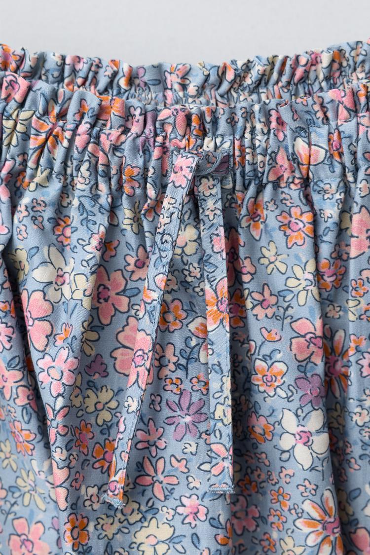 ZARA ЮБКА ИЗ ПОПЛИНА С ЦВЕТОЧНЫМ ПРИНТОМ И ОБЪЕМНЫМ НИЗОМ, СИНИЙ