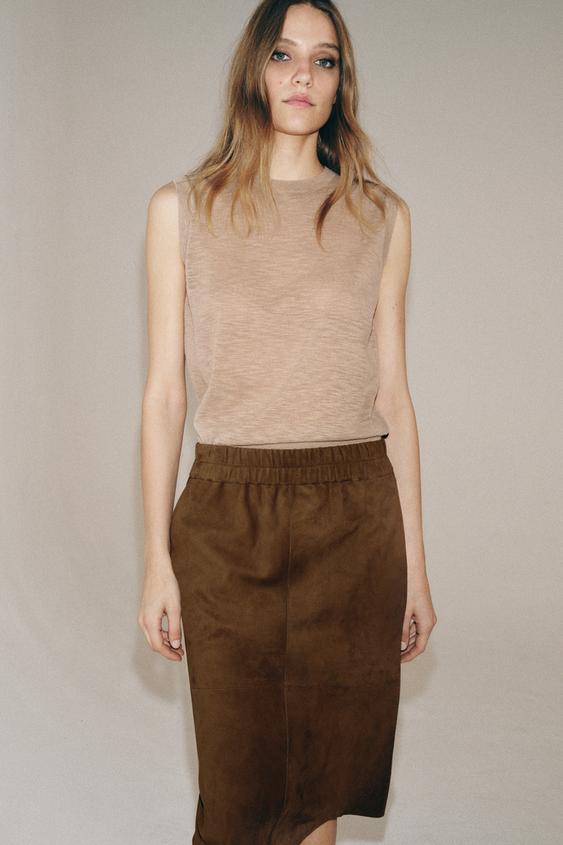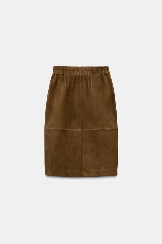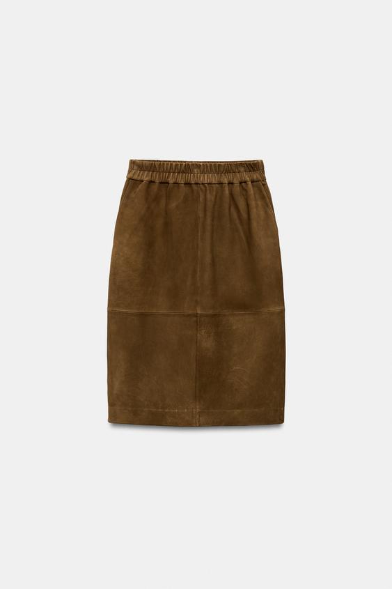 ZARA ЮБКА ИЗ ЗАМШИ — ZW COLLECTION LIMITED EDITION, СВЕТЛО-КОРИЧНЕВЫЙ
