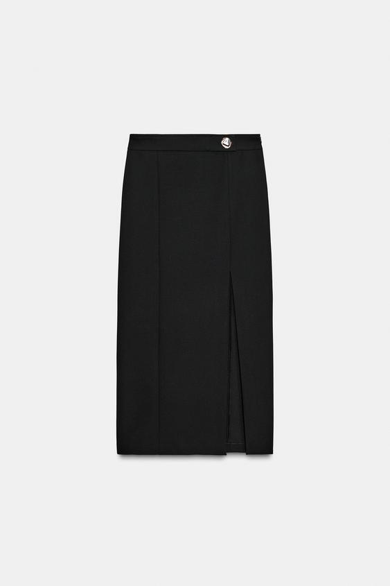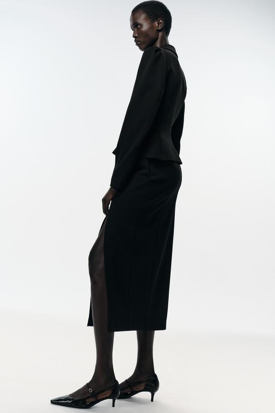 ZARA ЮБКА-КАРАНДАШ МИДИ С РАЗРЕЗОМ, ЧЕРНЫЙ