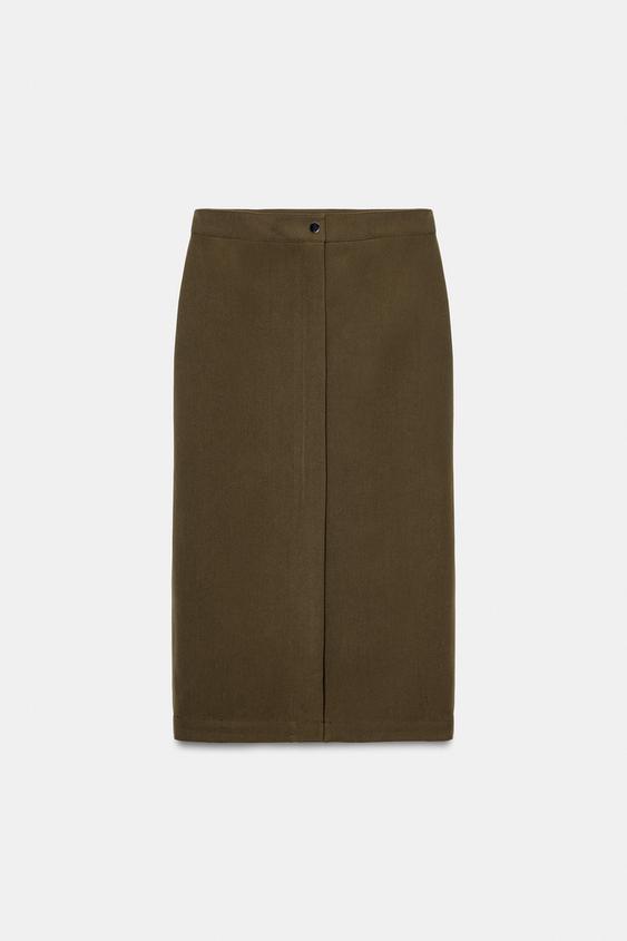 ZARA ЮБКА-КАРАНДАШ МИДИ, ТАБАЧНЫЙ