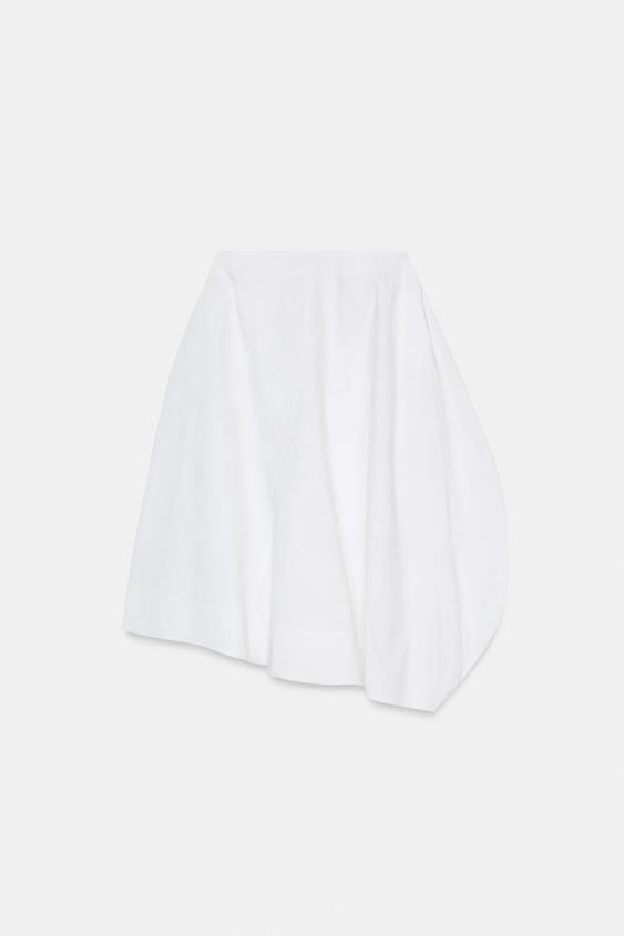 ZARA ЮБКА МИДИ АСИММЕТРИЧНОГО КРОЯ, БЕЛЫЙ