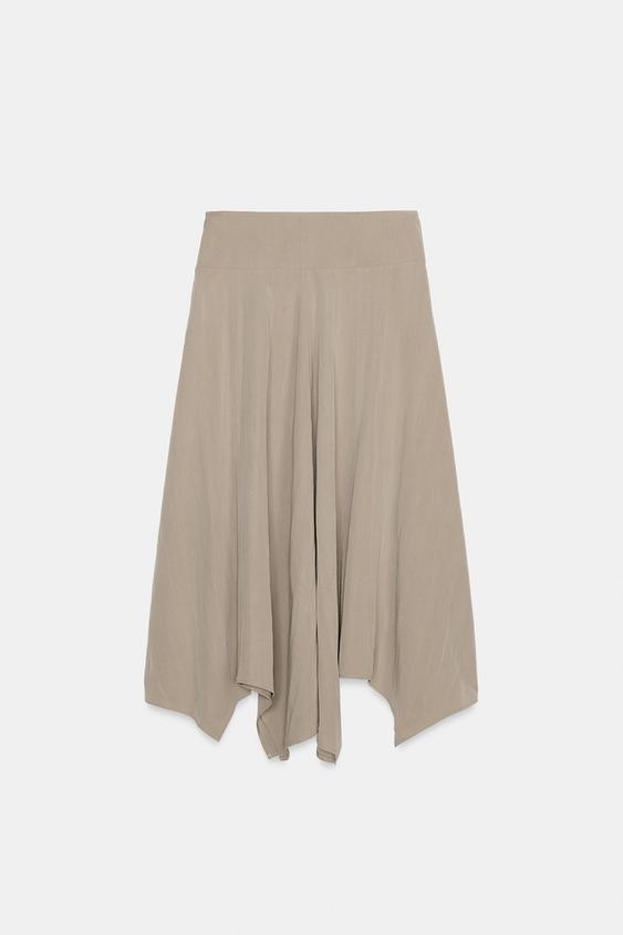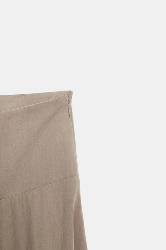 ZARA ЮБКА МИДИ АСИММЕТРИЧНОГО КРОЯ, СВЕТЛЫЙ ЖЕЛТО-КОРИЧНЕВЫЙ
