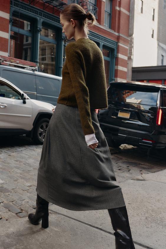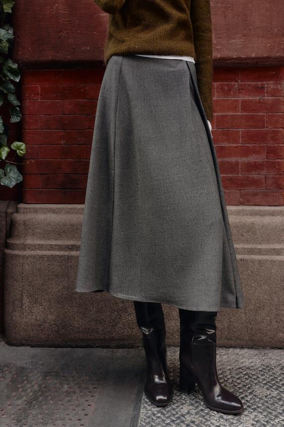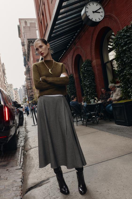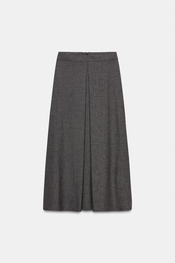 ZARA ЮБКА-МИДИ «ГУСИНАЯ ЛАПКА», КОРИЧНЕВЫЙ