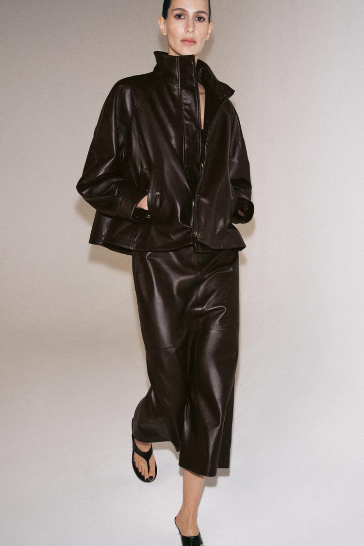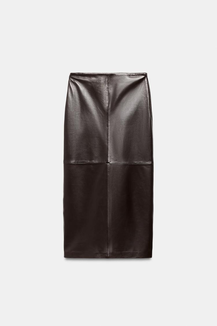 ZARA ЮБКА МИДИ ИЗ 100% КОЖИ — ZW COLLECTION, КОРИЧНЕВЫЙ