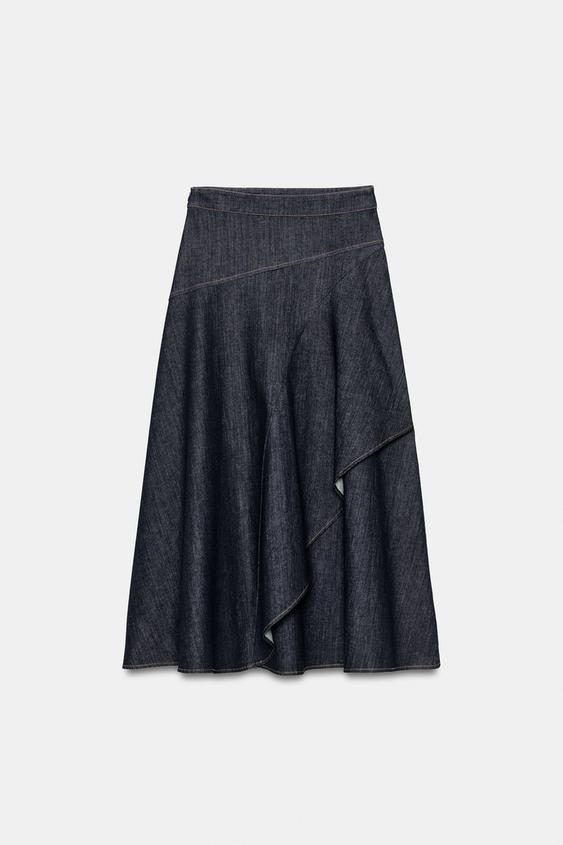 ZARA ЮБКА МИДИ ИЗ ДЕНИМА Z1975 С ВОЛАНАМИ, СИНИЙ