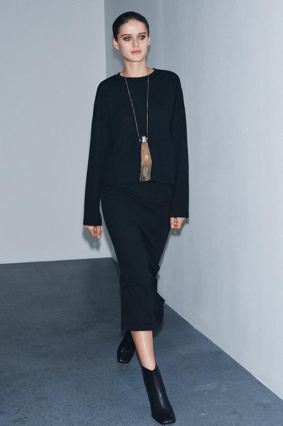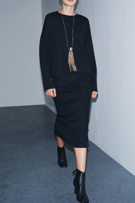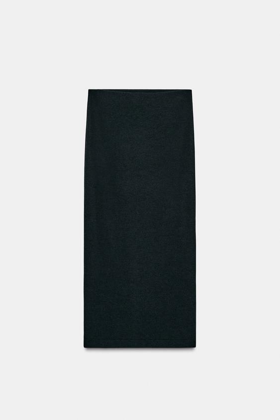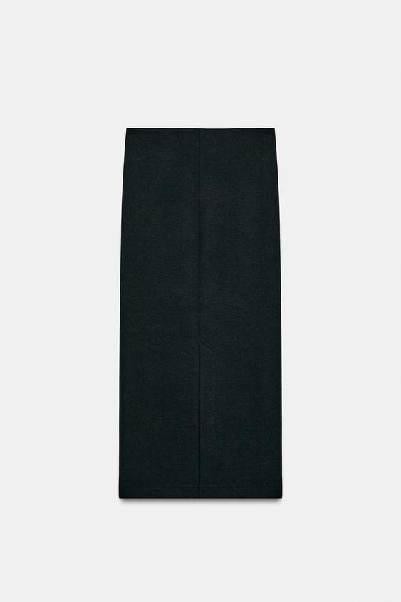 ZARA ЮБКА МИДИ ИЗ МЯГКОЙ ТКАНИ, ЧЕРНЫЙ МЕЛАНЖ