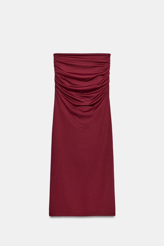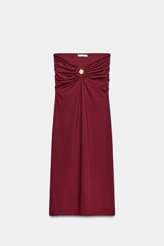 ZARA ЮБКА МИДИ ИЗ ПОЛИАМИДА С ОТДЕЛКОЙ, БУРГУНДИ