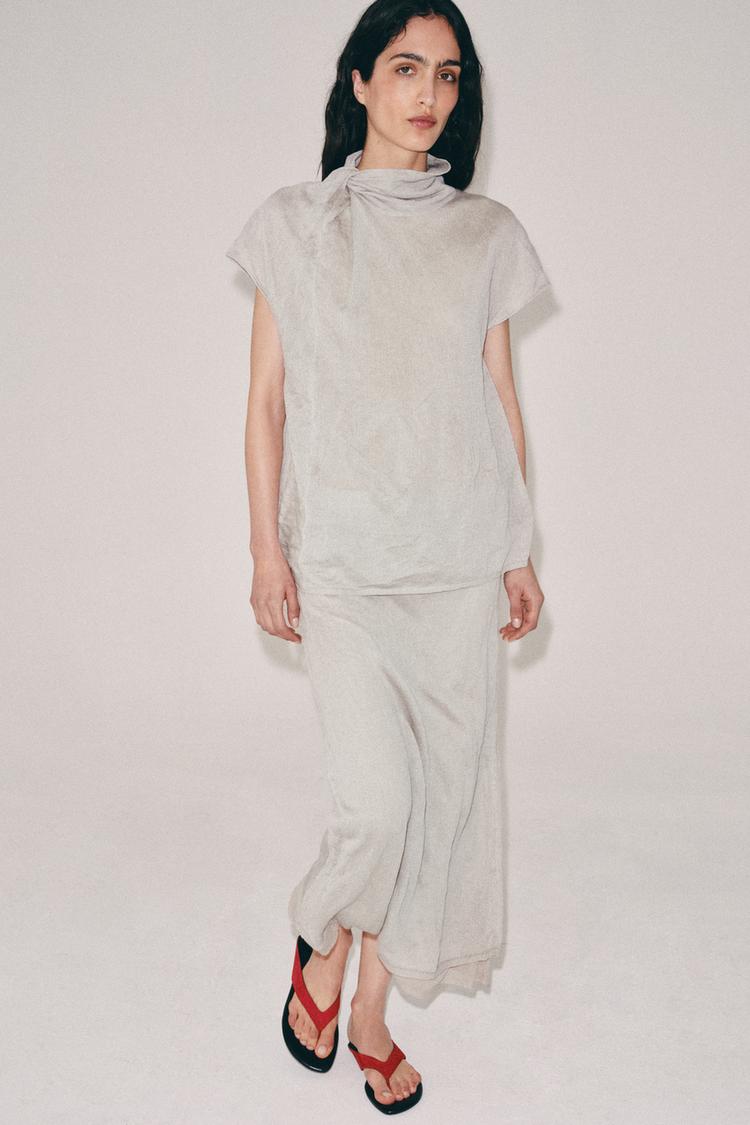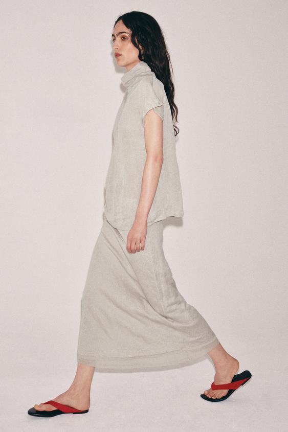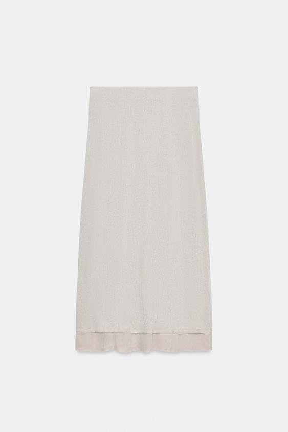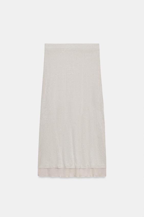 ZARA ЮБКА МИДИ ИЗ ЖАТОГО ТРИКОТАЖА, ПЕСОЧНЫЙ МЕЛАНЖ